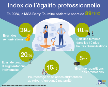 Conformément au décret n° 2019-382 du 30 avril 2019, la MSA Berry-Touraine publie ses résultats en matière d'égalité entre les hommes et les femmes :